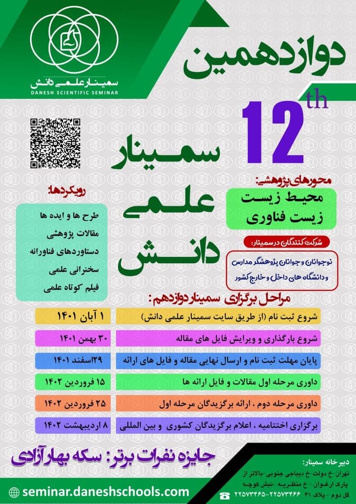بلاشک میوه رسیده این پیشرفت های علمی ثمره بذری است که در سنین نوجوانی محققان و پژوهشگران آنرا کاشته و پرورش داده اند. در این راستا برآن شديم تا سمینارى را تحت عنوان سمینار علمی دانش آموزی از سال ١٣٩١ برگزار نماییم تا این نوجوانان محقق و پزوهشگر آینده سازان خوبی برای میهن عزیزمان باشند.