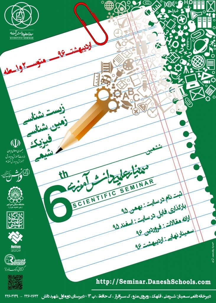 به توفيق خداوند و به همت و حمايت نهادهای ارزشمند علمی، پزوهشی و فرهنكی مختلفى همچون وزارت آموزش و پرورش، ستاد توسعه علمی و فناوری، سازمان حفاظت از محیط زیست، انجمن أُتیسم ایران، گروہ رامک خودرو و بسیاری نهادهای دیگر؛ امسال موفق به برگزاری ششمین دوره از اين سمينار شديم.
